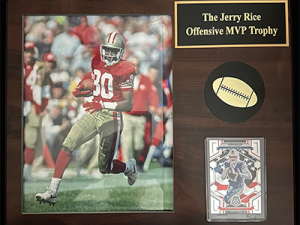 [topscorer_core_section_title disable_title_break_words=”no” title_tag=”h4″ target=”” content_alignment=”left” title=”Jerry Rice Memorial Trophy Winners” text=”Jerry Rice Trophy – Competition Committee selects up to 10 nominees for Offensive MVP across all positions. All owners then vote, using a weighted point system, and the highest player is awarded the MVP.” title_margin=”-7px” text_margin_top=”14px”]